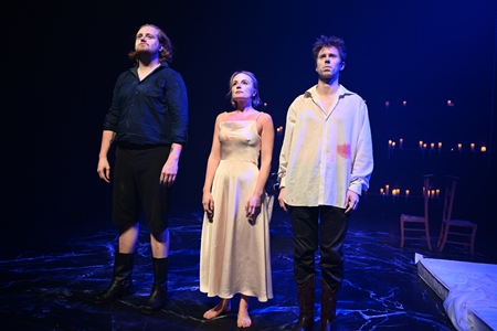 Regisseur Jaak Lema zet – net als bij Hamlet – in op een sterk fysiek samenspel tussen de acteurs. Die aanpak resulteert in een directe, tastbare intensiteit die het publiek geen moment loslaat. De eigentijdse tekstbewerking van Mike Wauters klinkt scherp, herkenbaar en verrassend actueel. Ze toont hoe tijdloos het verhaal van Shakespeare blijft, zonder aan kracht of poëzie in te boeten. Ruben Van Keer (Romeo) en Eve Van Avermaet (Julia) brengen een ontroerende en geloofwaardige vertolking van jonge, naïeve liefde. Hun spel balanceert tussen tederheid en onstuimigheid, en maakt de tragiek des te schrijnender. Pieter Jan De Paepe vervolledigt de cast met een gelaagde invulling van Paris en tevens enkele bijrollen zoals Mercutio en de voedster.