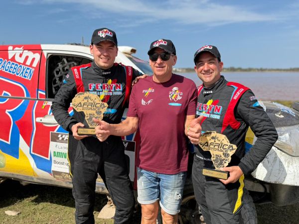 Aan de fout van het podium applaudisseert een apetrotse papa Pascal Feryn bijgestaan door een al even fiere boezemvriend Koen Wauters. Ze worden omringd door de rest van het team. Een luid applaus stijgt op wanneer Cédric en Bjorn de trofee in de lucht duwen. “Dit is een fantastisch gevoel”, zegt Cédric Feryn. “Ik ben blij en blik terug op een mooie rally. Het was bij momenten echt afzien, maar als je dan kan doorbijten dan maakt het momenten als deze extra mooi. Bjorn en ik hebben de voorbije twee weken zoveel meegemaakt. We hebben echt liggen kloten, liggen taffelen, vloeken en zoveel meer. In de duinen dachten we even aan opgeven en zei ik dat we er maar moesten mee stoppen. Maar we hebben toch nog eens geprobeerd, zijn eruit geraakt en bereikten het bivak. Het doorzetten en niet willen opgeven, dat gaat me het meeste bijblijven. Onze auto is zwaar, té zwaar voor de duinen. Maar oer en oersterk. Het is jammer van die elektronische problemen, want dat buiten beschouwing gelaten was de wagen top. Drie platte banden op twee weken, als je ziet waar wij gepasseerd zijn, dat is eigenlijk niets.”
