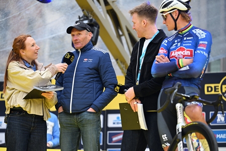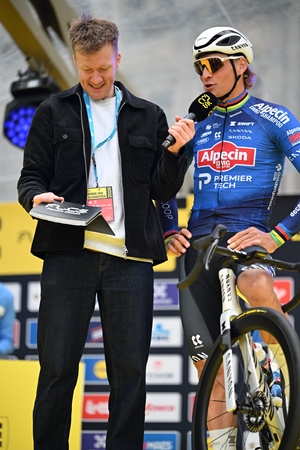 Er waren ook korte interviews met oa Mathieu Van der Poel , Wout Van Aert , Mads Pedersen , Tadej Pogacar en de debuterende Remco Evenepoel. Vijf renners waar enorm naar uitgekeken werd om er een fantastische wedstrijd van te maken.