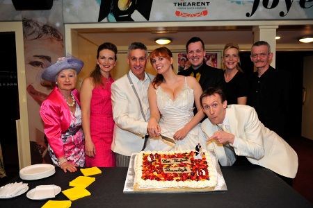 Komediekleppers als Danni Heylen, Dirk Van Vooren, Patrick Onzia en Britt Van der Borght repeteren samen met nieuwkomers in het genre, Fleur Brusselmans en Ann Van den Broeck. Naast de acteerprestaties komt er nog heel wat kijken bij de voorbereidingen van deze productie. Vandaag mocht modeontwerper Nicky Vankets zijn creaties die hij maakte voor deze komedie, voorstellen aan de pers. Bovendien opende de tandem achter De Komedie Compagnie, nl. Dirk Van Vooren en Nico Warrinnier, met trots de vernieuwde foyer van Theater Elckerlyc, dit in samenwerking met THEARENT. Sinds kort zorgen zij voor een nieuwe wind binnen dit receptief theater. Kortom, reden genoeg om met het hele team een taart aan te snijden. Laat het dan natuurlijk een bruidstaart wezen...