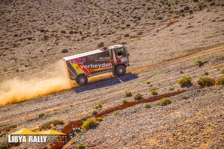 De derde rit in de rally van Libya bracht de karavaan van Icht naar Mahmid, een klassementsrit van 406 km over onverharde wegen gekruid met enkele duintjes. “Het waren geen kathedralen van duinen maar ze waren wel pittig en verraderlijk” blikt Michel Suetens terug op zijn dag. “Eén keer hebben we bijna een ‘Pascalleke’ gedaan en de wagen bijna op zijn dak gelegd. Bij een beklimming van een duin stopten we net iets te laat op de top waarna het in één ruk steil naar onder ging. Onze Toyota dook bijna verticaal 20 meter naar beneden. Gelukkig is alles goed gekomen en stonden we in geen tijd terug op onze vier wielen. In totaal hebben we zo’n 25 km duinen voor de wielen geschoven gekregen. Het was een mooie maar geen vlekkeloze rit.