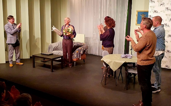 Op zondag 23 februari werd acteur-regisseur en ex EWT-directeur Theo van Baarle in de bloemetjes gezet omdat deze productie exact de 100e EWT-productie was waaraan Theo van Baarle sinds zijn EWT-debuut in 1991 als acteur of regisseur had meegewerkt. En ook volgend seizoen zal hij als kranige 80-plusser weer op de EWT-planken te zien zijn.