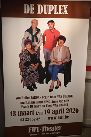 Dit is een doorn in het oog van de familie Wouters en zij proberen er alles aan om toch hun doel te bereiken. Ze proberen het bloed vanonder de nagels van hun onderburen te halen. Dit met het gevaar de boemerang in hun gezicht te krijgen. Wil je het slot van de voorstelling te weten komen dan moet je maar een ticketje kopen en het live aanschouwen in het EWT. Het EWT theater bewijst voorstelling na voorstelling dat ze de koningen van kwaliteit komedies van de bovenste plank zijn. En nu was het ook niet anders met vier acteurs op het podia met een rijkgevulde cv van hier tot in Tokio. Ze spelen hun rol met zoveel passie alsof je in het echte leven vol intriges bent beland. Je moet Anne Mie , Liliane , Frank en Theo ook de kneepjes van het vak niet meer leren om het aanwezige publiek een fijne avond of namiddag te bezorgen. Wil je dit live meemaken ga dan snel naar de website voor je ticketje vooraleer je te laat bent. Zondag 19 maart 2026 is het de allerlaatste voorstelling van ' De Duplex ' in het EWT - Theater Hertstraat 2 te Deurne ( Antwerpen )