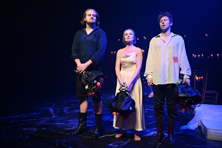 Regisseur Jaak Lema zet – net als bij Hamlet – in op een sterk fysiek samenspel tussen de acteurs. Die aanpak resulteert in een directe, tastbare intensiteit die het publiek geen moment loslaat. De eigentijdse tekstbewerking van Mike Wauters klinkt scherp, herkenbaar en verrassend actueel. Ze toont hoe tijdloos het verhaal van Shakespeare blijft, zonder aan kracht of poëzie in te boeten. Ruben Van Keer (Romeo) en Eve Van Avermaet (Julia) brengen een ontroerende en geloofwaardige vertolking van jonge, naïeve liefde. Hun spel balanceert tussen tederheid en onstuimigheid, en maakt de tragiek des te schrijnender. Pieter Jan De Paepe vervolledigt de cast met een gelaagde invulling van Paris en tevens enkele bijrollen zoals Mercutio en de voedster.