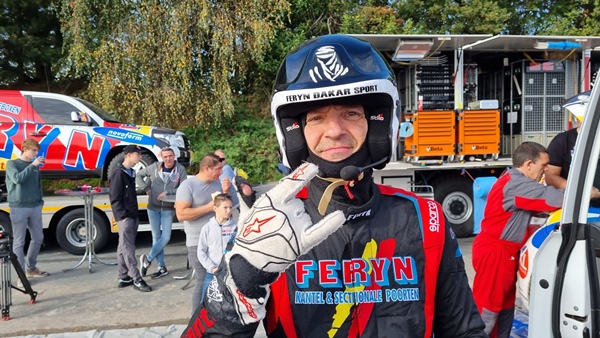 Teameigenaar en navigator Pascal Feryn voelde zich als een kind in een snoepwinkel en liep met een brede glimlach rond. “In het zand spelen is altijd fijn. En, het is nog maar net begonnen”, zei Pascal Feryn enthousiast. “Een probleem dat we al gecounterd hebben is het plots wegvallen van het vermogen. Bleek dat de mazoutfilter vol zat met partikels afkomstig van de tank. De klassieke tank is vervangen door een zak. Daarin bleek was mousse en gruis te zitten. We hebben ook gemerkt dat er nog wat werk is aan de koppeling. Dat is voor de volgende testsessie later deze maand.