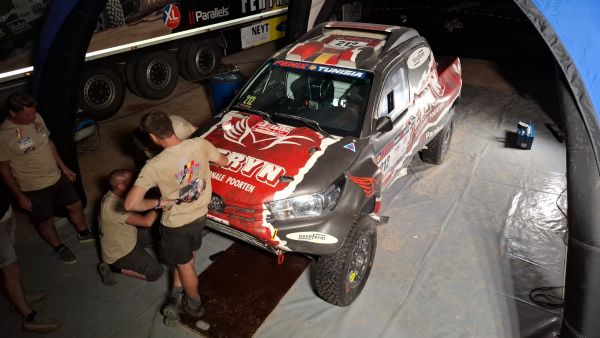 Eens in het bivak begon het team te werken aan de wagen. Zoals steeds deden ze dat met verve. Koen en Tom trokken zondagavond extra vroeg naar bed om fris te zijn voor de etappe van maandag. “Er wacht ons een rit van 600 km waarvan zo’n 400 km tegen de tijd. Vandaag zijn er geen duinen bij, tot groot jolijt van de nek en nekspieren. Na onze problemen van gisteren zijn we zesde in de stand. De komende dagen gaan we proberen om wat tijd goed te maken, gaan we nog enkele afstellingen proberen en ligt de nadruk vooral op plezier”, besluit Koen Wauters.