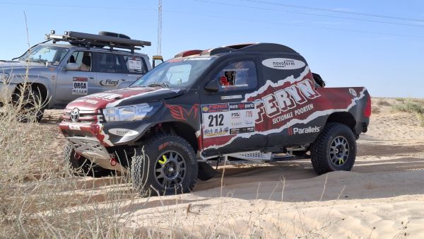 De vierde etappe van de Fenix Rally was opnieuw een rondje met start en aankomst in het bivak van Douz. Met maar liefst 600 km, waarvan 400 competitieve kilometers, was het een stevig uit de kluiten gewassen etappe zonder duinen en uitgetekend op een snel en bij wijlen technisch parcours. Na de problemen op zondag eindigden Koen Wauters en Tom De Leeuw (Toyota Hilux) derde algemeen en derde wagen.