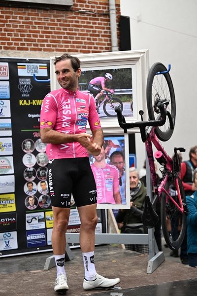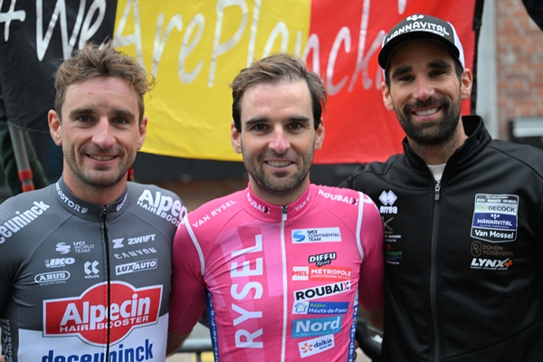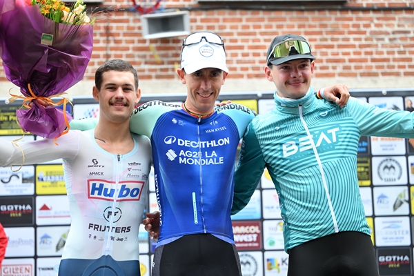 Na de koers werden de top drie gehuldigd op het podia en mocht Baptiste Planckaert zijn fiets aan de spreekwoordelijke haak hangen.