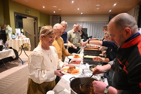 Het bestuur van de supportersclub met oa Andy , Piet en Jurgen hadden alles terug goed in banen geleid zoals we ieder jaar gewend zijn. De frietjes met groentjes aangevuld met stoofvlees of vol-au-vent gingen vlot in de lege maagjes van de aanwezigen. Met als toetje nog een lekker eclair als dessert.