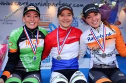 Zondagnamiddag wist Wereldkampioen Marianne Vos te Veldhoven haar Nederlandse titel in het veldrijden te verlengen. Op het loodzware parcour was ze oppermachtig. Sophie De Boer en Sabrina Stultiëns mochten haar vergezellen op het podium als tweede en derde na een schitterende wedstrijd.